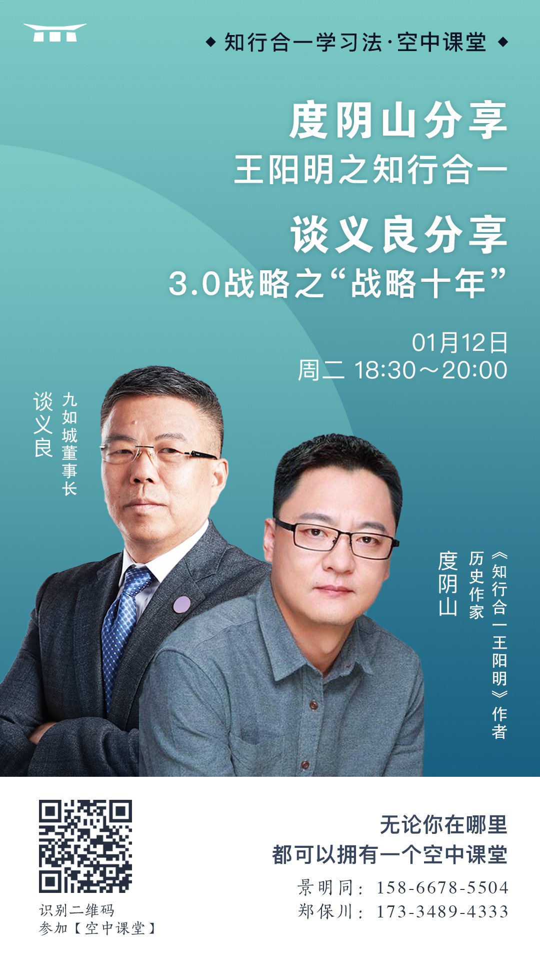 畅销书作家度阴山:王阳明式知行合一 | 空中课堂直播预告
